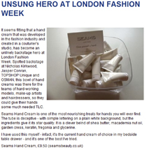 It seems fitting that a hand cream that was developed in the fashion industry and created in a couturier’s studio, has become an unlikely backstage hero at London Fashion Week. Spotted backstage at Nicholas Kirkwood, Jasper Conran, TOPSHOP Unique and OSMAN, this bowl of hand creams was there for the teams of hard-working models, make-up artists and hairdressers, so they could give their hands some much needed TLC.